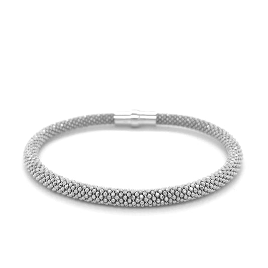 Sterling Silver Rhodium Plated Popcorn Motif Bangle