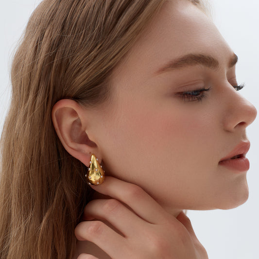 Zircon Hoop Drop Earrings 18K Gold Earrings