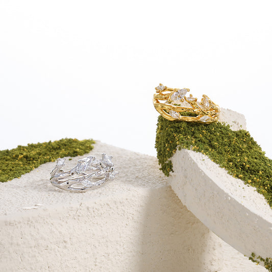 Women Irregular CZ Tree Branch 925 Sterling Silver Adjustable Ring