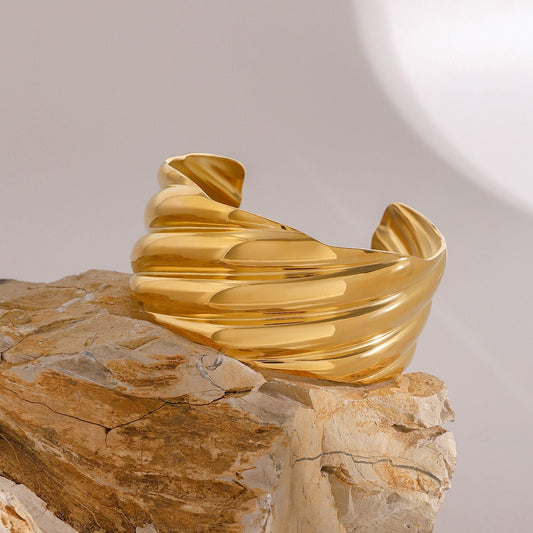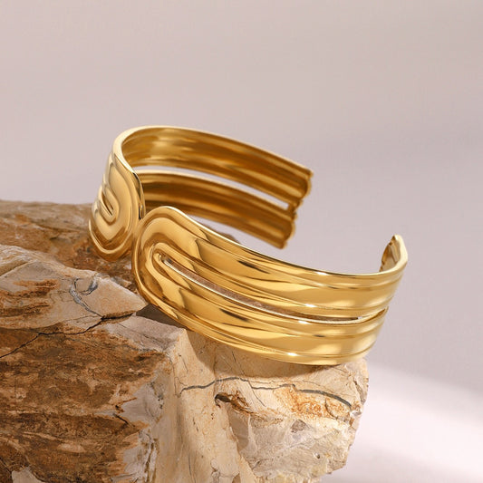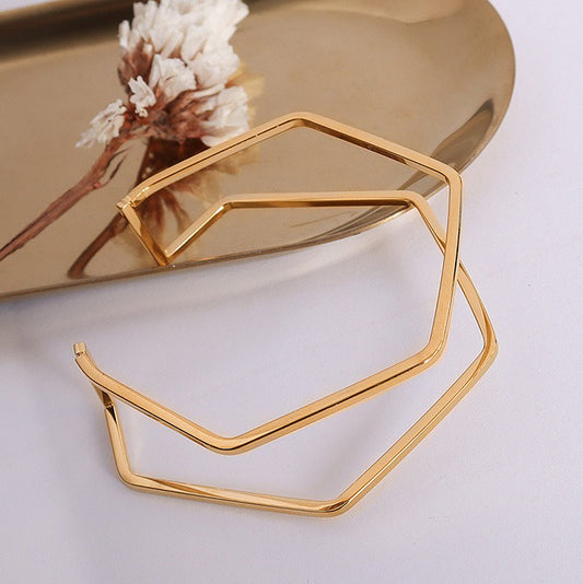 18K Gold Double-Layer Polygonal Line Design Open Bracelet