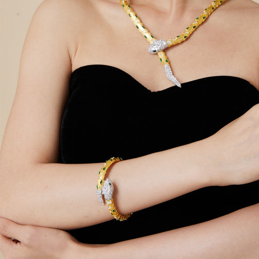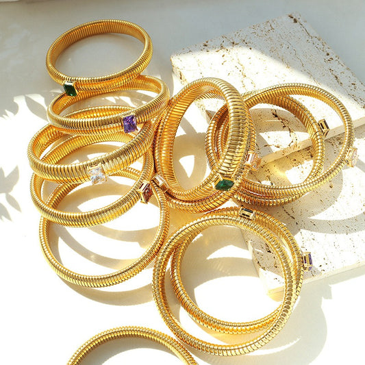 18K gold snake-shaped inlaid gemstone design light luxury high-end bracelet
