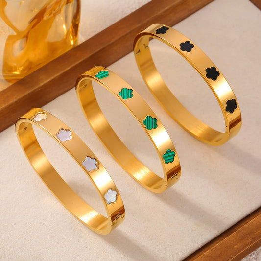 18K gold exquisite fashion five-leaf clover design simple style bracelet