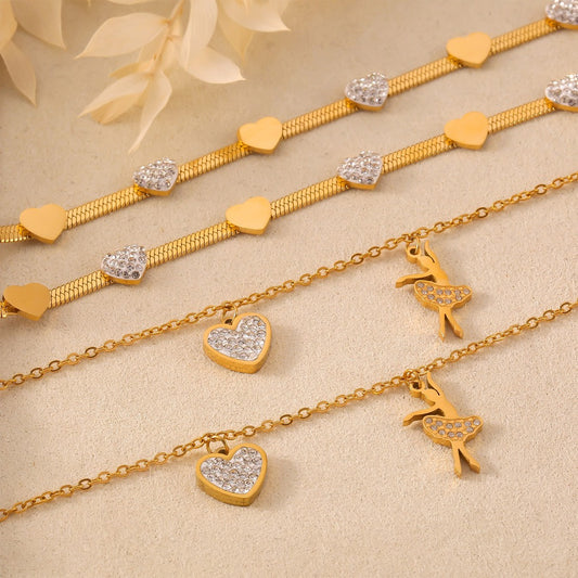 18K gold exquisite fashion heart diamond design light luxury style bracelet