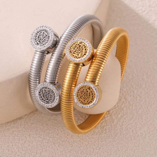18K gold retro fashion diamond with hollow design light luxury style bracelet