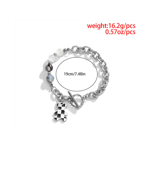 Personalized black and white chessboard small bear simple hand decoration