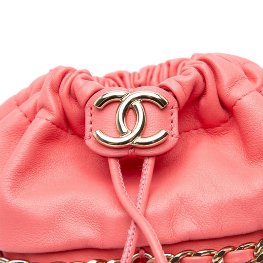 Chanel Lambskin CC Chain Frame Drawstring Bucket Bag