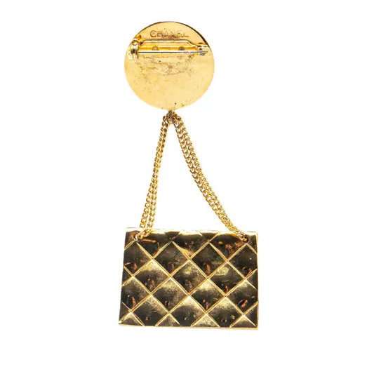 Chanel Gold Plated CC Quilted Flap Bag Brooch