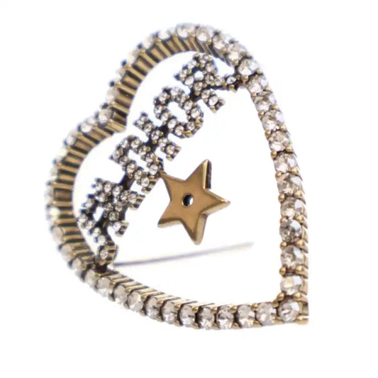 Dior Gold Plated Crystal JAdior Heart Brooch