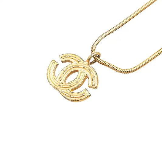 Chanel CC Gold Plated Diamond Cut Pendant Necklace