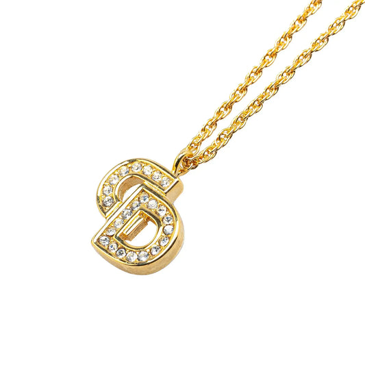 Dior Gold Plated Logo Rhinestone Pendant Necklace