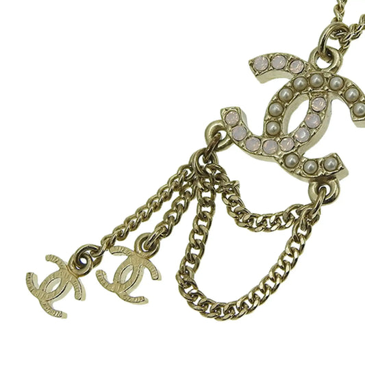 Chanel Gold Plated Faux Pearl CC Rhinestone Pendant Necklace