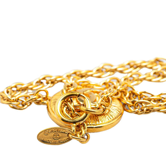 Chanel Gold Plated CC Round Mirror Pendant Necklace