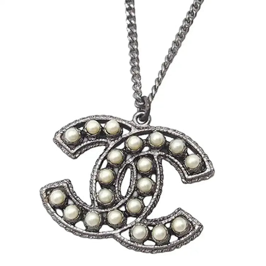 Chanel CC Silver Plated Faux Pearl Pendant Necklace
