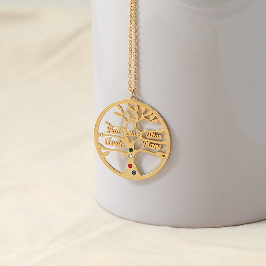 Trendy Fashion Hollow Tree of Life Inlaid Zircon Customizable Name Design Versatile Necklace