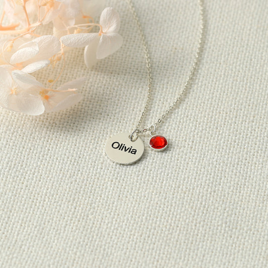 Silver Simple and atmospheric round shape with birthstone can be customized name design all-match necklace
