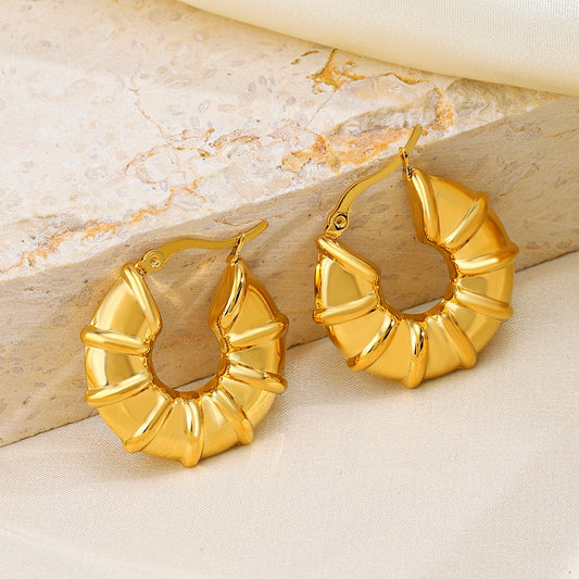 18K gold U-shaped earrings with bamboo pattern design, simple and personalized