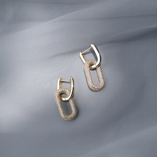 18K gold U-shaped/round diamond-encrusted high-end earrings