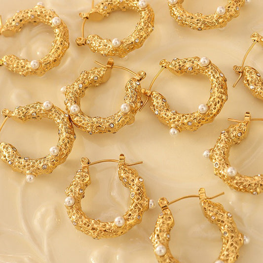 18K gold U-shaped hollow with inlaid pearls, exquisite and noble earrings