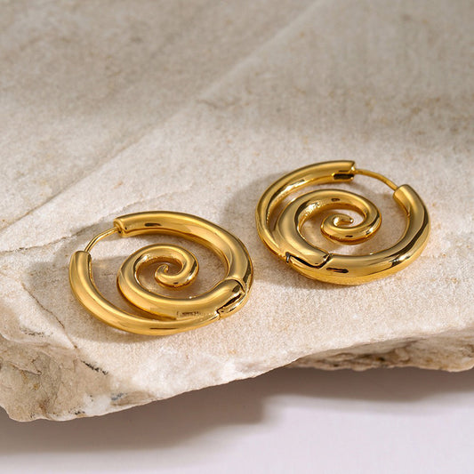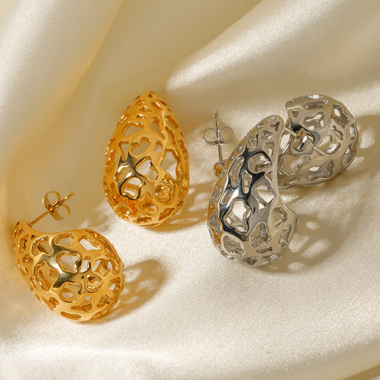 18K gold trendy personality teardrop-shaped earrings with hollow design