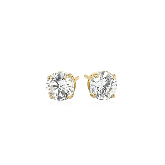14k Yellow Gold Stud Earrings with White Hue Faceted Cubic Zirconia(6mm)