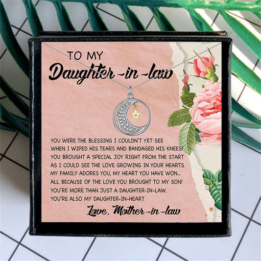 Exquisite Moon Star Diamond Design Gift Box Pendant Necklace for Dear Daughter