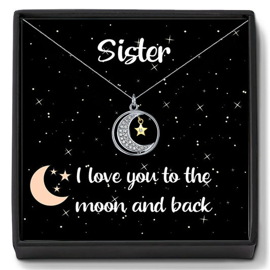 Fashion Moon Star Diamond Design Gift Box Necklace For Dear Sister