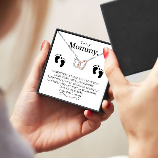 Two-color hollow heart double ring interlocking diamond design gift box necklace for dear mother