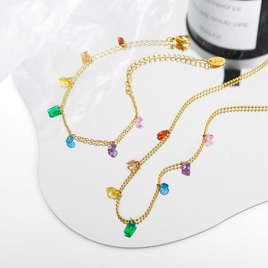 18k Gold Noble and Exquisitely Inlaid Colorful Zircon Circle Design Light Luxury Wind Earrings Necklace Set