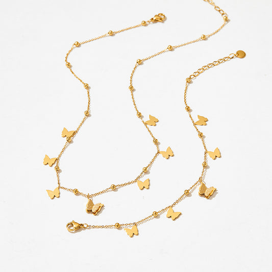 18K gold novel and fashionable butterfly design light luxury style bracelet and necklace set