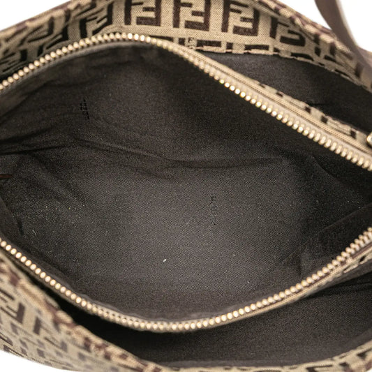 Fendi Zucca Canvas Embroidered Baguette Satchel