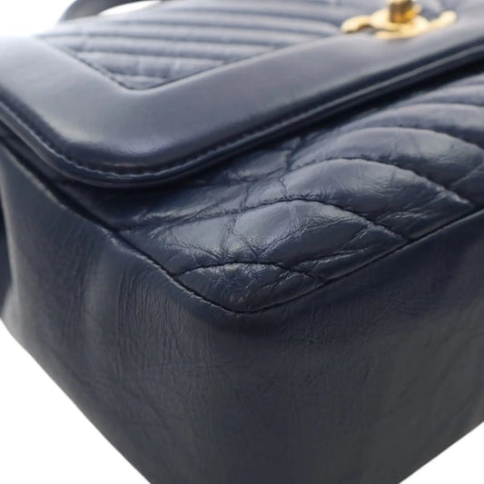 Chanel CC Chevron Aged Calfskin Top Handle Flap