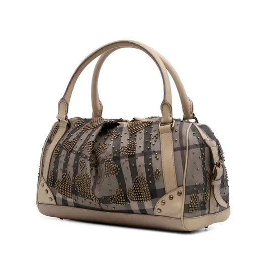 Burberry Smoke Check Coated Canvas Studded Heart Boston Bag