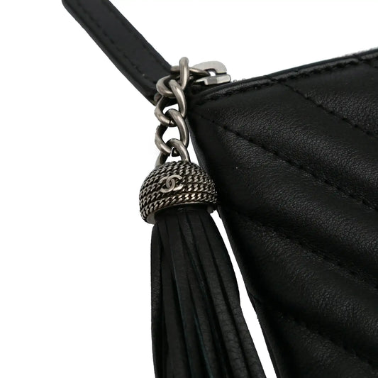 Chanel Large Diagonal Chevron Calfskin Tassel O Case Clutch
