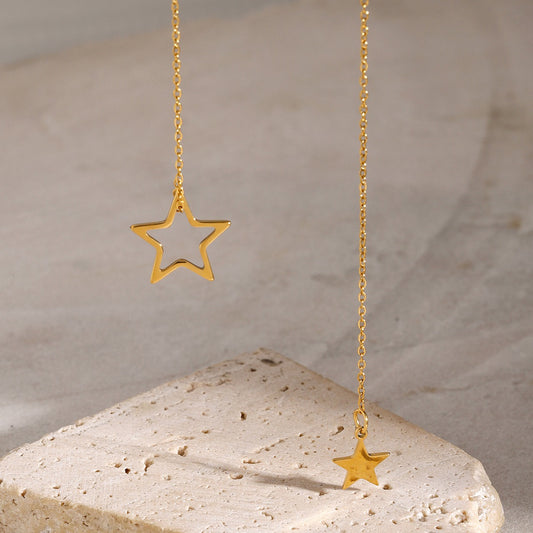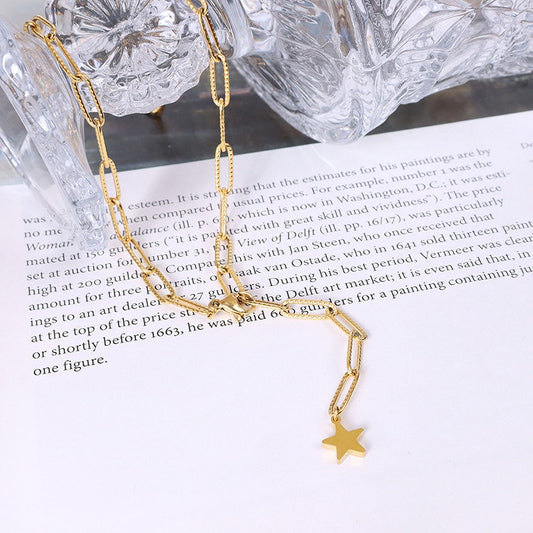 18K gold paper clip chain with five-pointed star pendant design high-end necklace