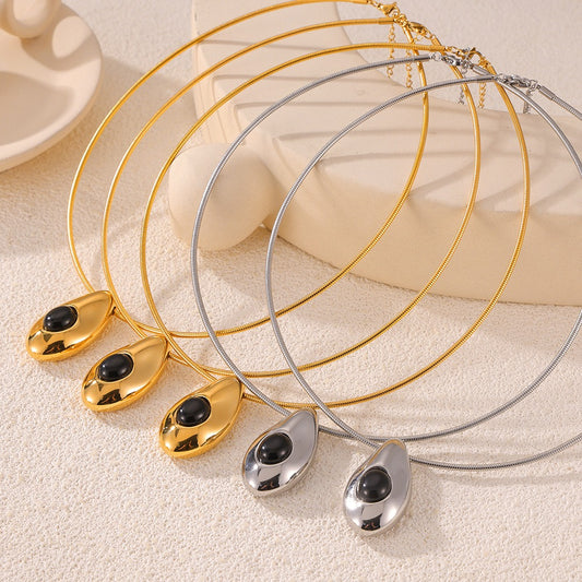 18K gold simple and elegant teardrop-shaped inlaid gemstone design pendant necklace