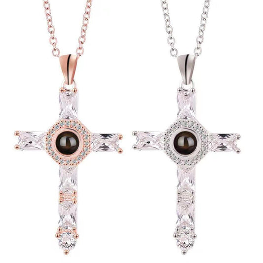 Noble Fashion Cross Inlaid Gem Design Projection Necklace