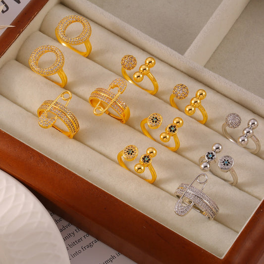18K gold exquisite noble pin/ring/ball diamond-studded design light luxury style ring