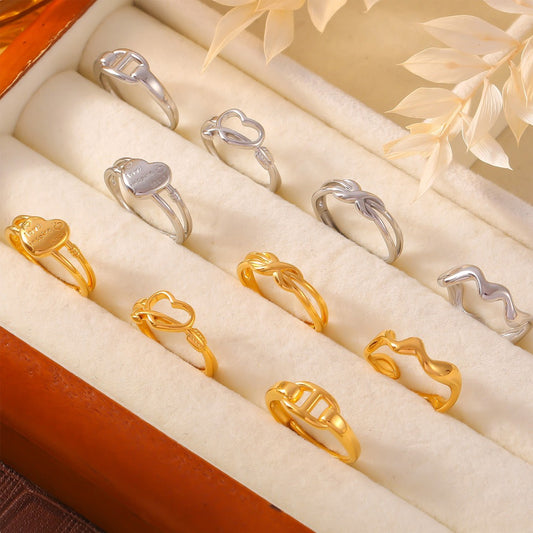 18K Gold Exquisite Fashion Woven Design Simple Style Versatile Ring