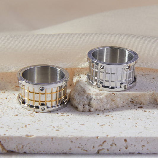 18K gold trendy personality geometric hollow design hip-hop style ring