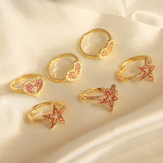 18K gold exquisite and dazzling love/hollow star-shaped zircon design versatile ring