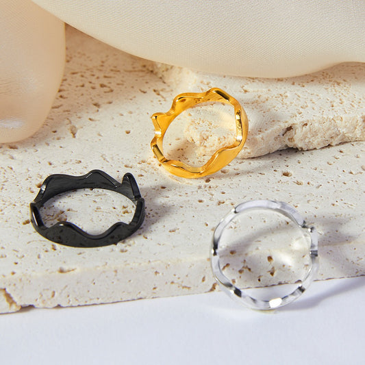 18K Gold Personality Fashion Hammer Pattern Lava Pattern Love Design Versatile Ring