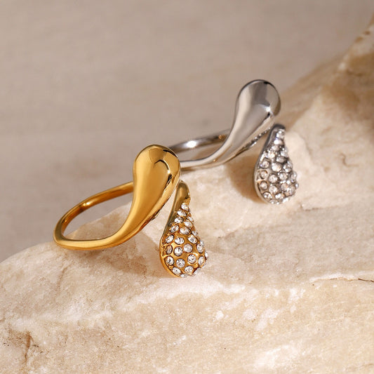 18K Gold Trendy Fashion Interlaced Teardrop Shape Inlaid Gemstone Design RingRegular price $89.90Regular priceUnit price / per-