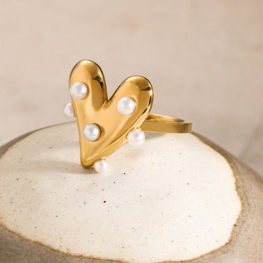 18K gold exquisite noble heart-shaped inlaid pearl design ringRegular price $86.90Regular priceUnit price / per