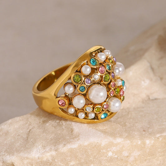 18K gold elegant retro inlaid pearl design light luxury style ringRegular price $96.90Regular priceUnit price / per-