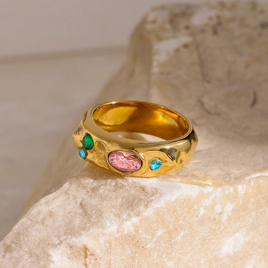 18K gold exquisite dazzling gemstone with hammered design ringRegular price $89.90Regular priceUnit price / per-