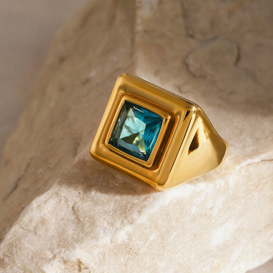 18K gold simple and elegant square gemstone design ringRegular price $96.90Regular priceUnit price / per-