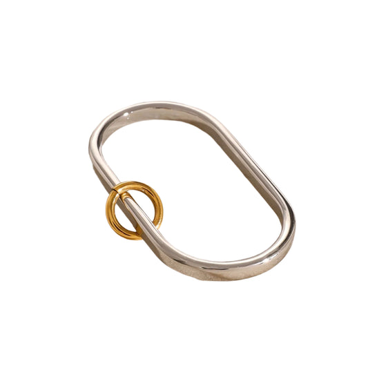 18K gold oval shape with gold and silver contrasting design unique high-end ring