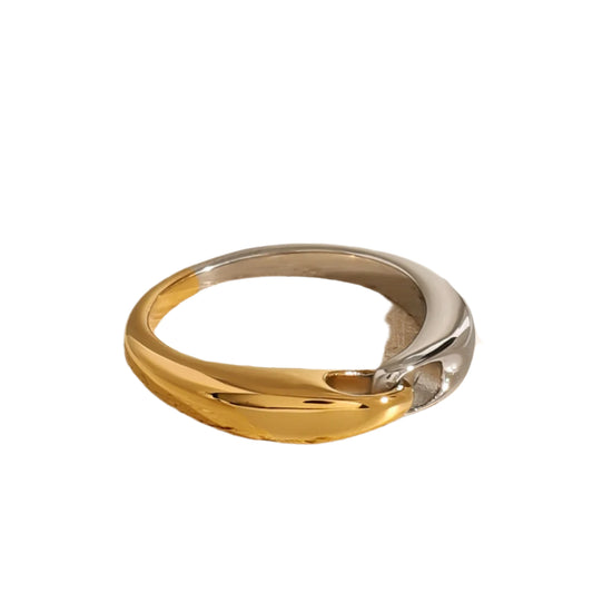 18K gold stylish simple irregular shape with double-layer design ring