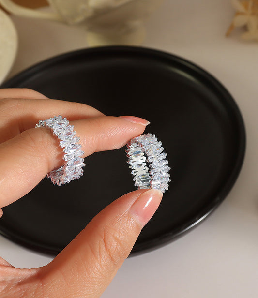 Fashion light luxury style platinum inlaid zircon design ring