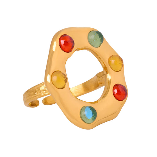 18K gold trendy personality irregular shape inlaid gemstone design ring